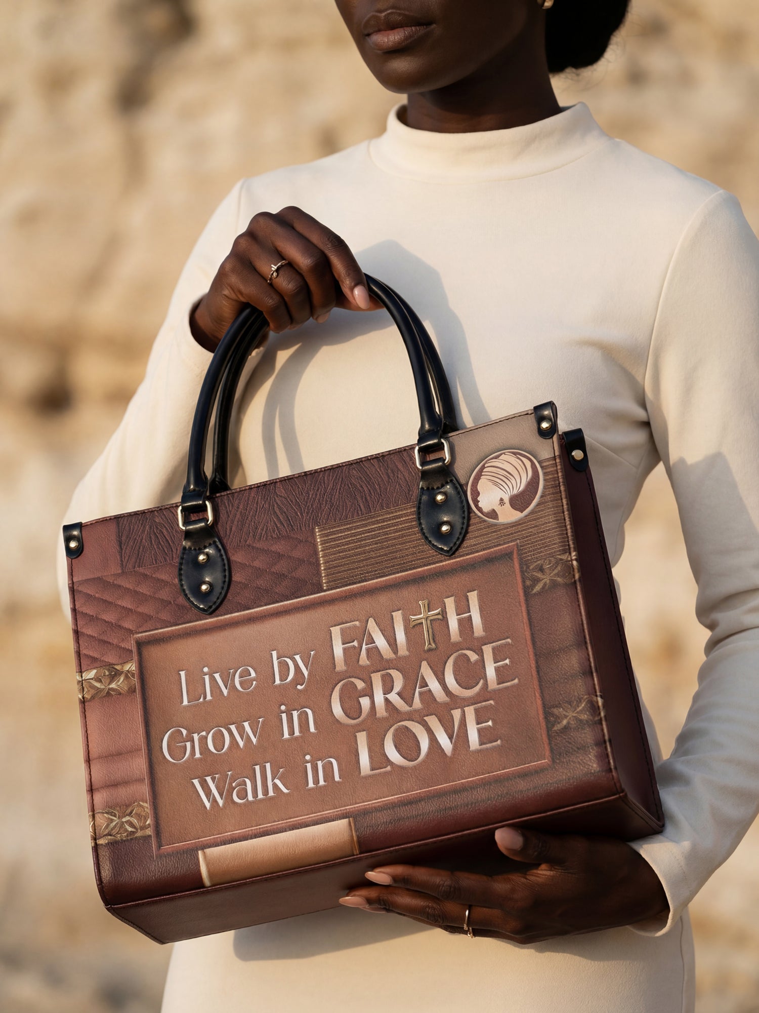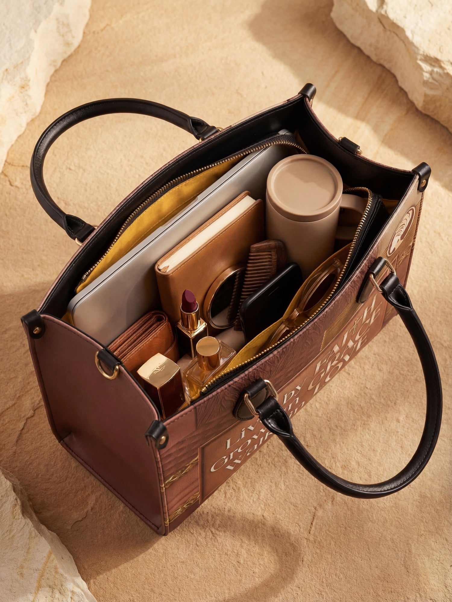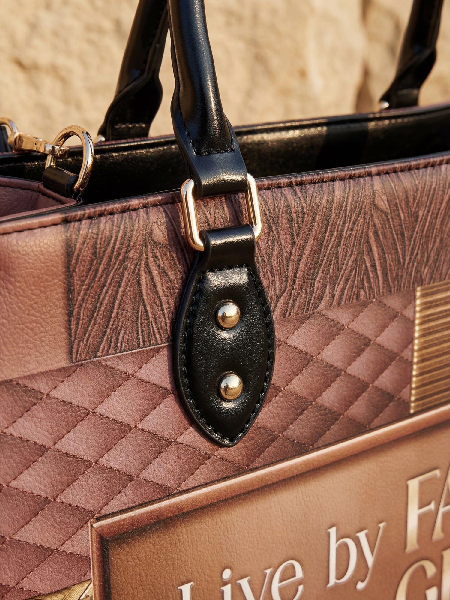 The Eliora leather handbag is more than a bag—it’s a reminder of how you walk through this life: with purpose, with power, and with unwavering peace. Wrapped in rich, earthy tones and luxurious leather textures, this bag carries a timeless message boldly stamped on the front: