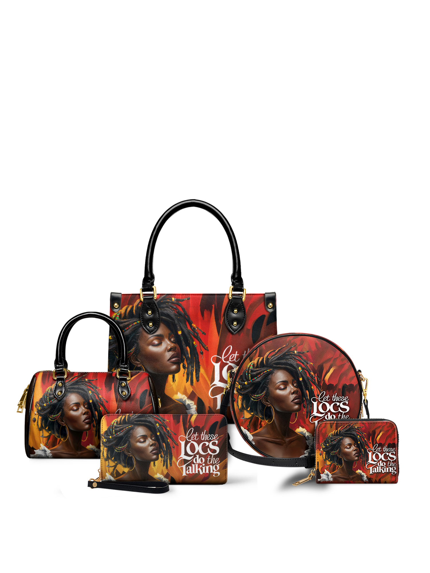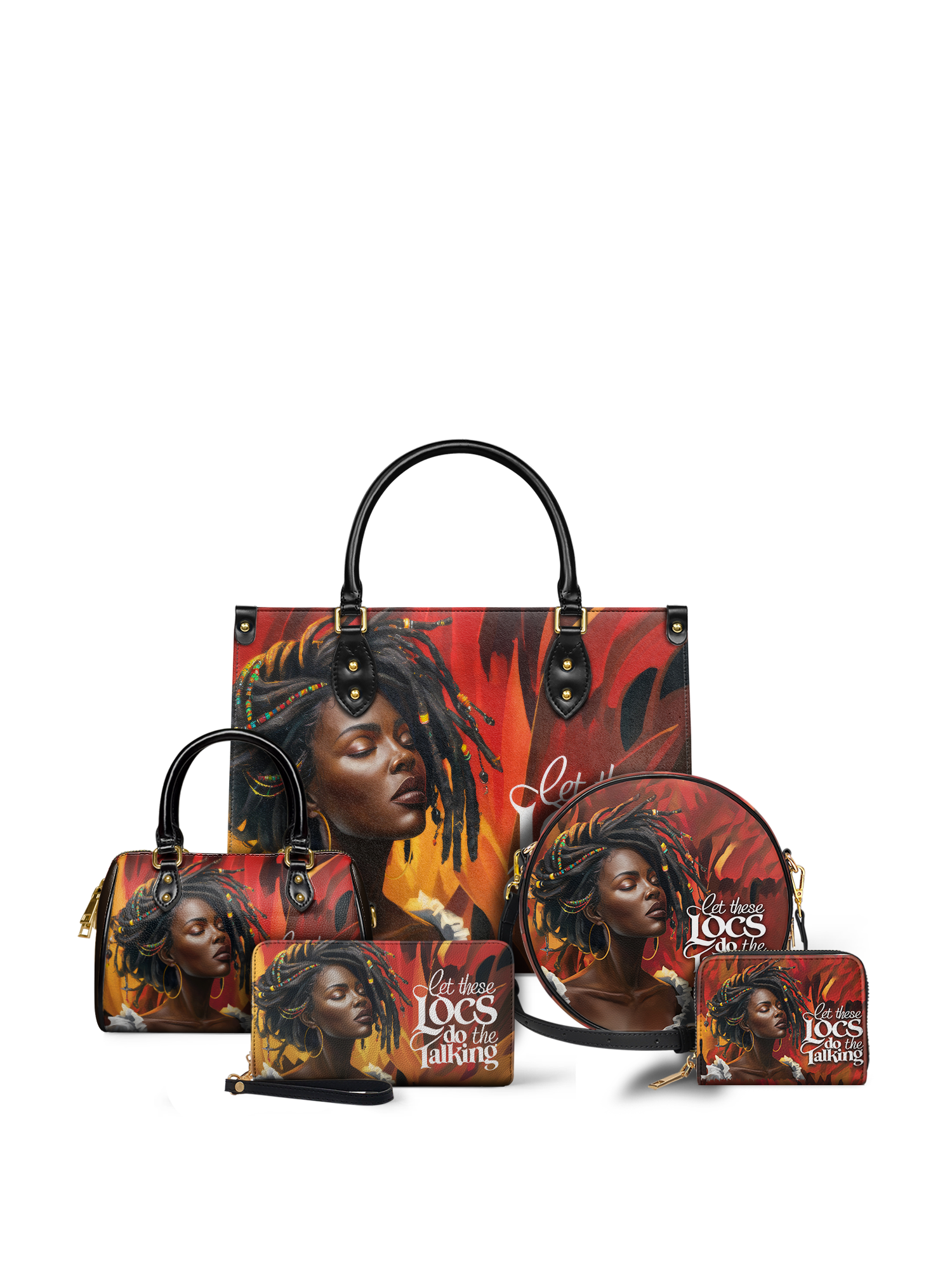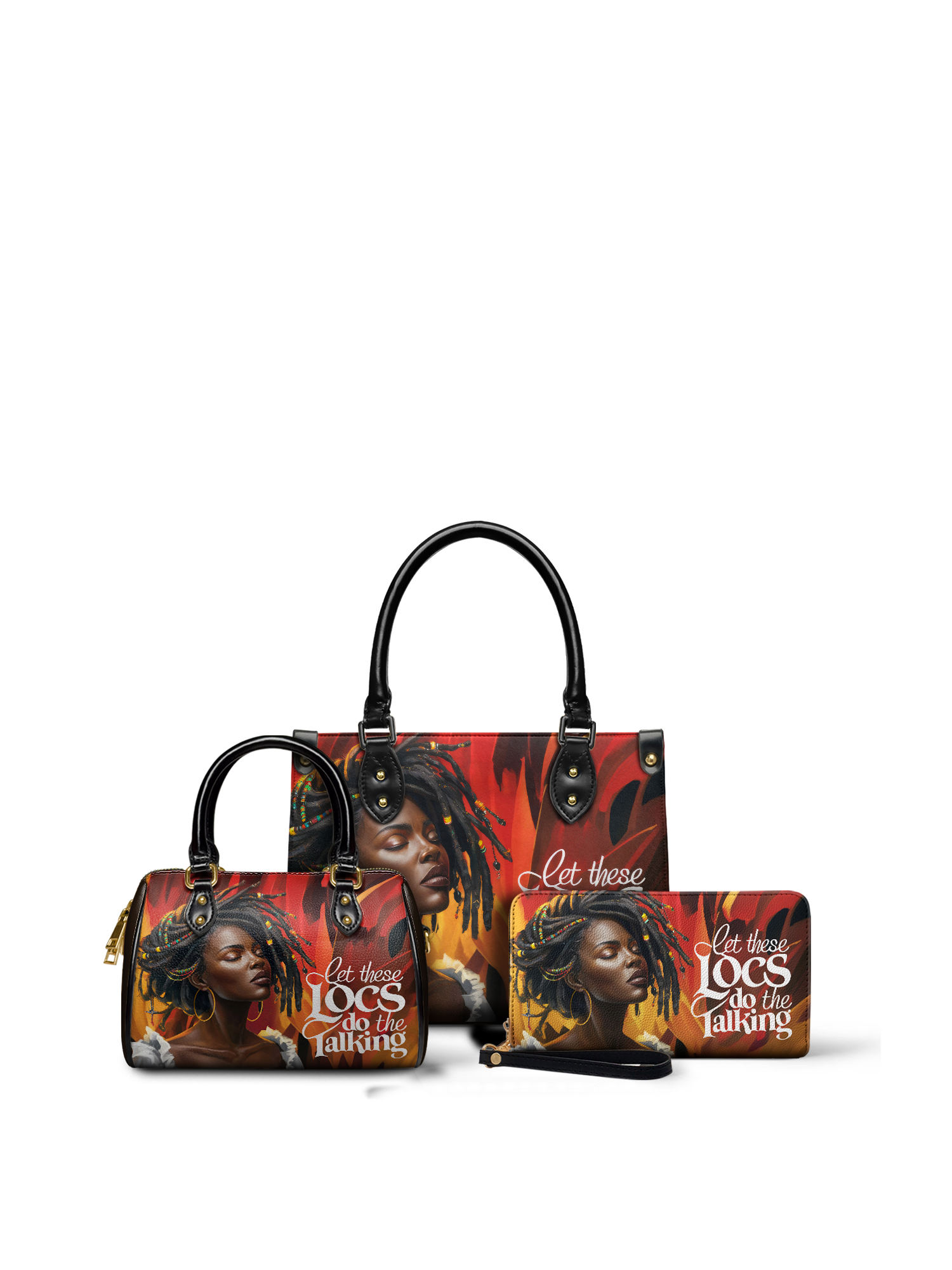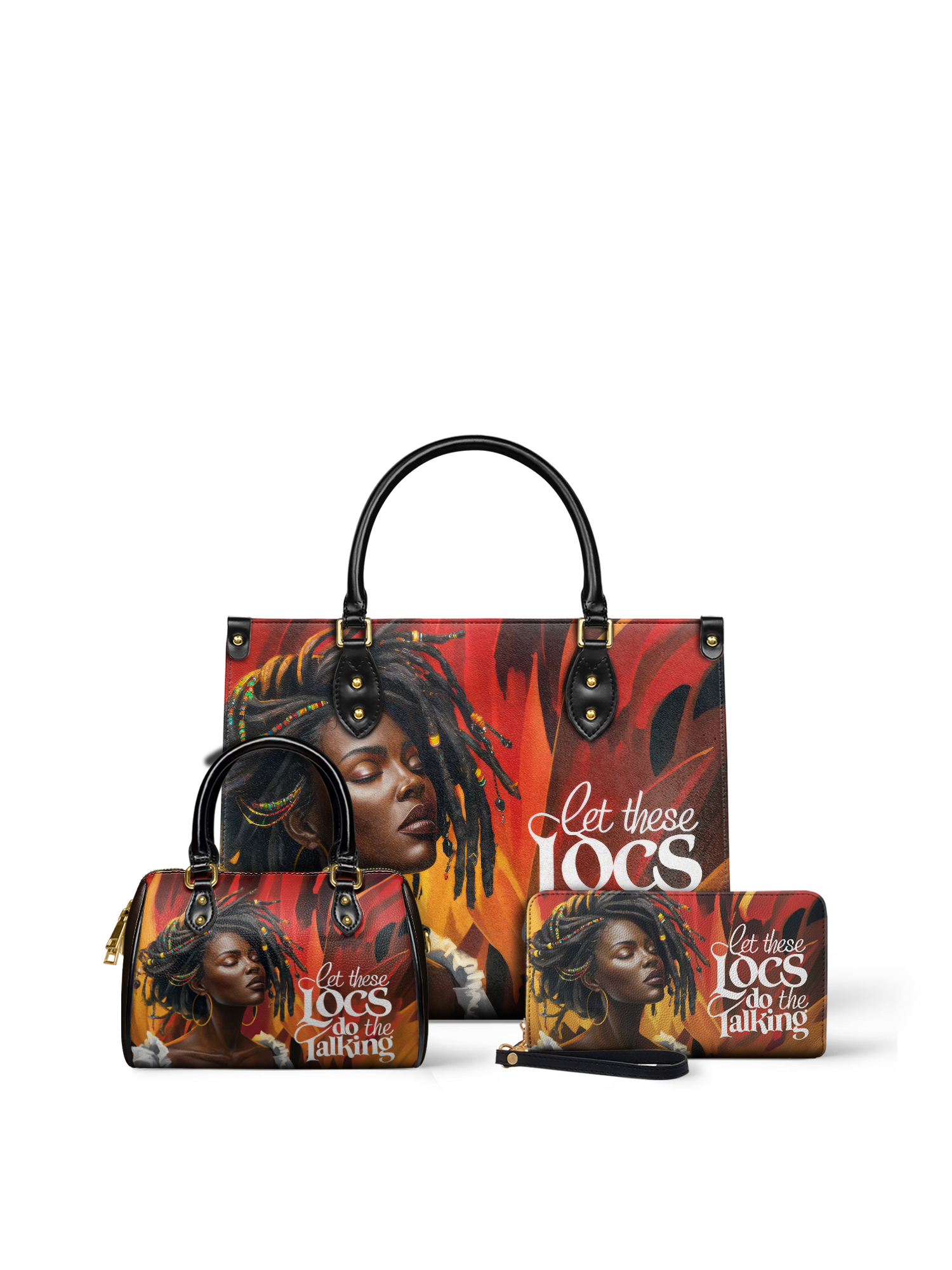 Introducing the Locella leather handbag: bold, unapologetic, and full of soul. This bag is more than an accessory—it’s a vibe. With every rich hue of gold, red, and deep chocolate, it tells a story of power, poise, and that effortless don’t-try-me energy that only a woman with locs knows how to carry.
