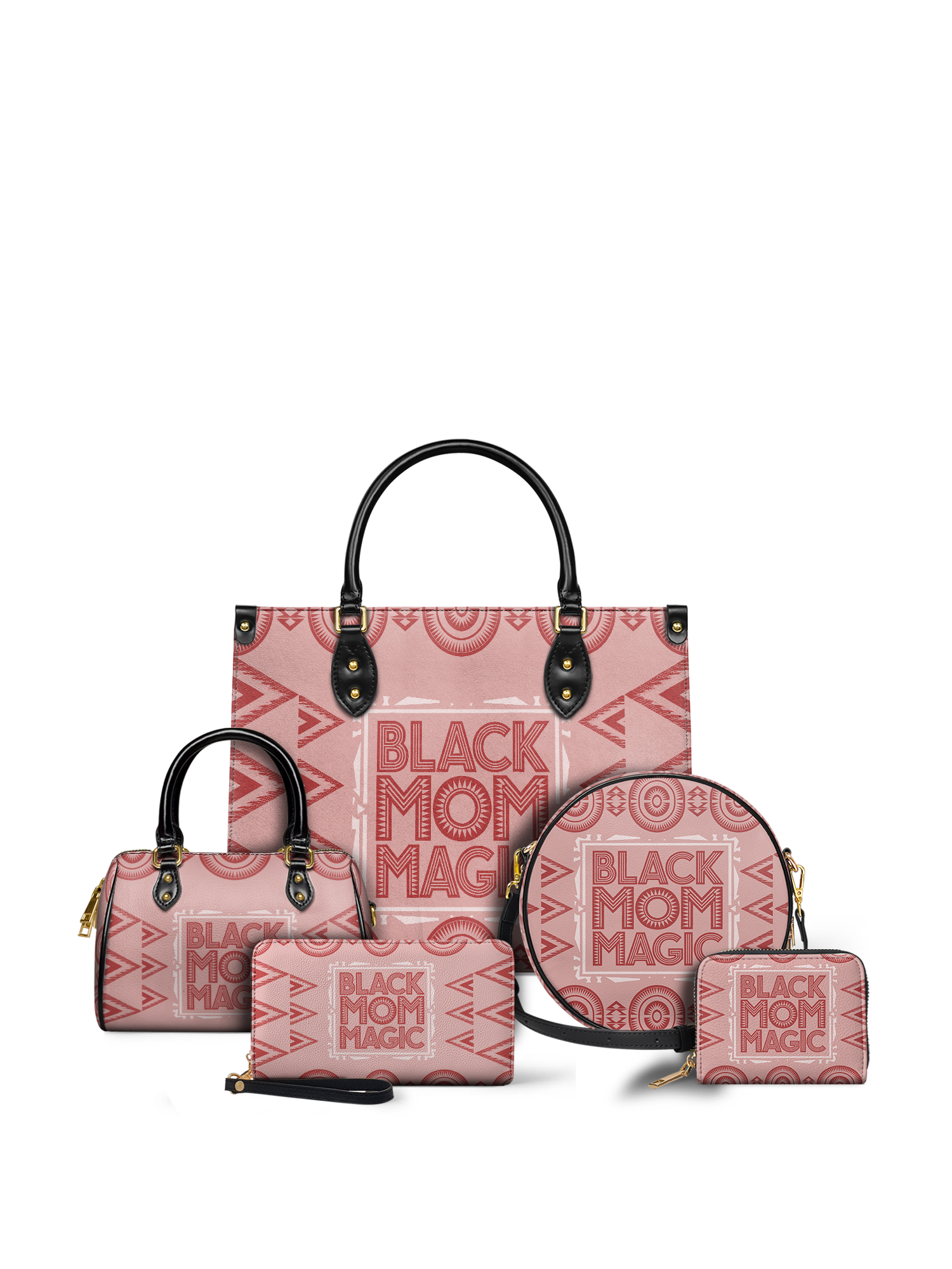 The Magimama mini satchel is sweet, bold, and full of love—just like the Black moms it celebrates. With soft rose tones and striking tribal patterns, it brings that “she does it all” energy in a stylish little package. The words say it loud, but you already know: it’s the magic for us. From school runs to weekend brunch, this one’s a pocket-sized tribute to the everyday wonder of Black motherhood.
