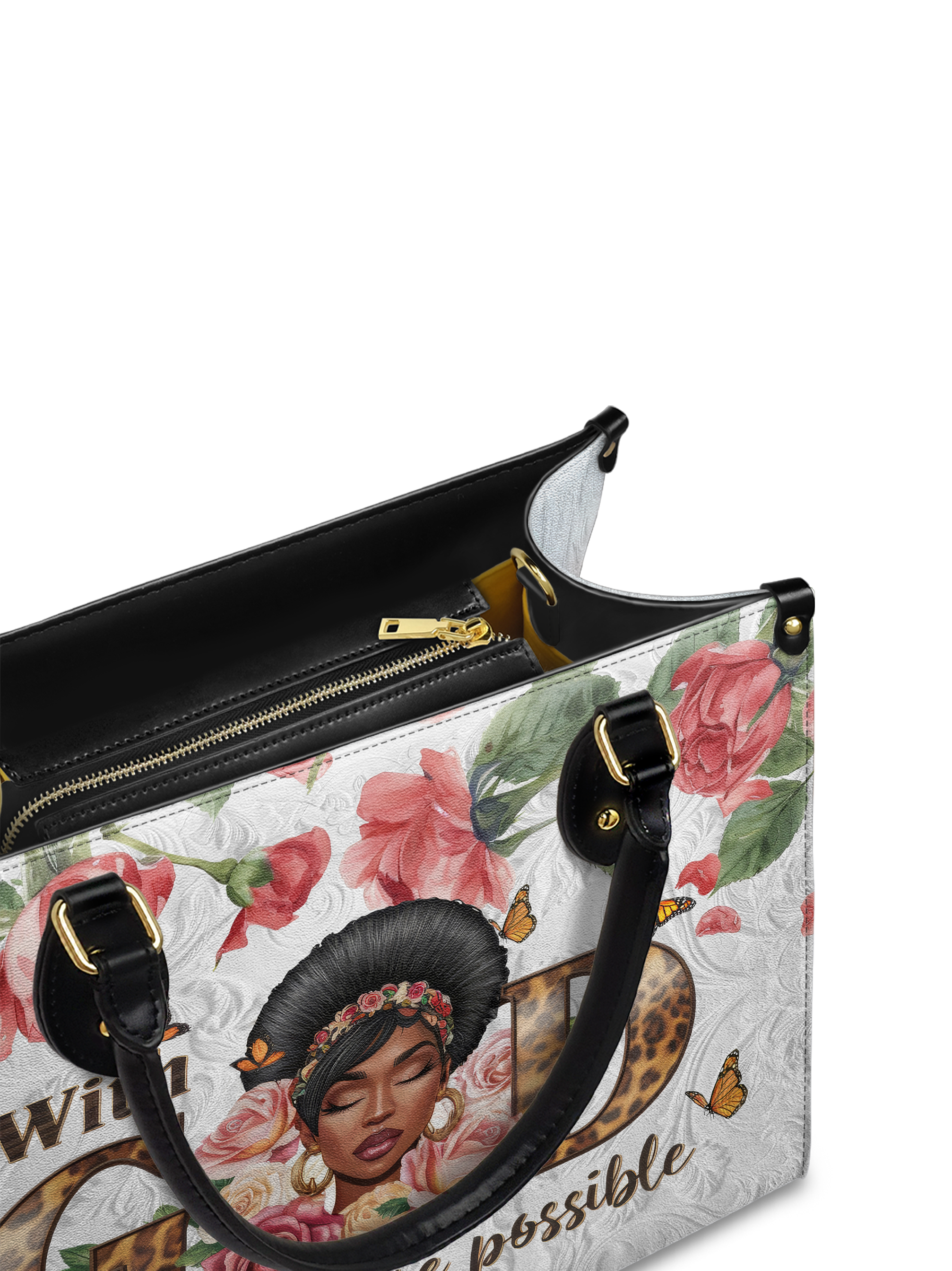 The Zanira Leather Handbag is your daily reminder that faith looks this good. With floral strength, fierce grace, and a crown of confidence, she whispers a simple truth everywhere you go: With God, all things are possible. Carry her like the testimony you are—bold, beautiful, and completely covered.